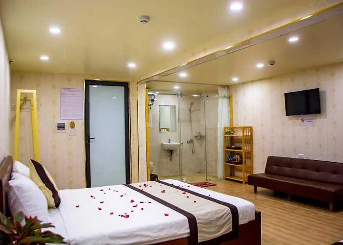 This Ha Long hotel is located in the Bai Chay district of Ha Long and offers to visit Cai Dam Market, which is 0.4 miles away. Castaway Island is also located around 25 minutes by foot from the Babylon Ha Long. The fantasy Sun World Halong Complex Amusement Park is also situated 1.9 miles away. For those traveling from afar, Cat Bi International airport is 40 minutes' drive away.
